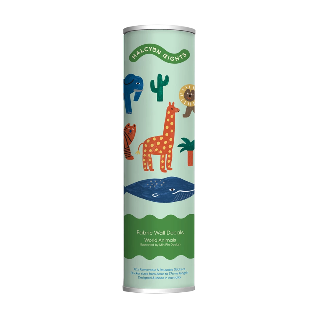 World Animal: Illustrations by Min Pin Design. 12 Reusable stickers. Sizes 6 cm – 37 cm in length.