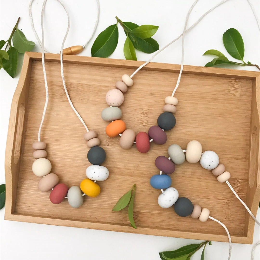 The One Chew Three NALA necklaces are the perfect neutral, modern silicone necklace featuring gorgeous autumn tones – think deep wine, dusty blues and mustards, mixed with natural tones. Yes, please! They’re sure to be a wardrobe staple for any new mumma this season!