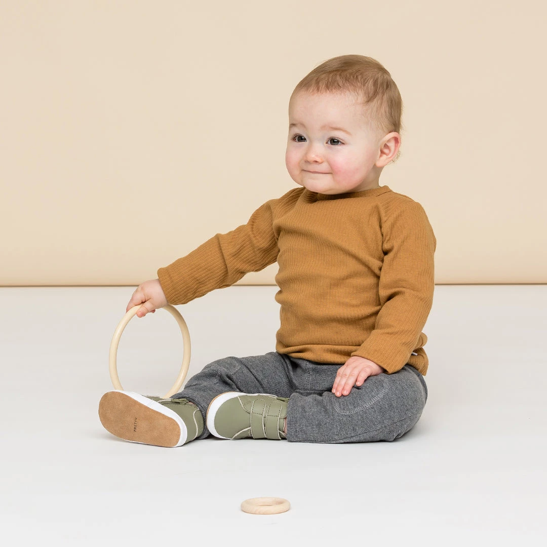 • Soft, flexible outsole to allow for baby’s natural foot development and sensory support when learning to walk