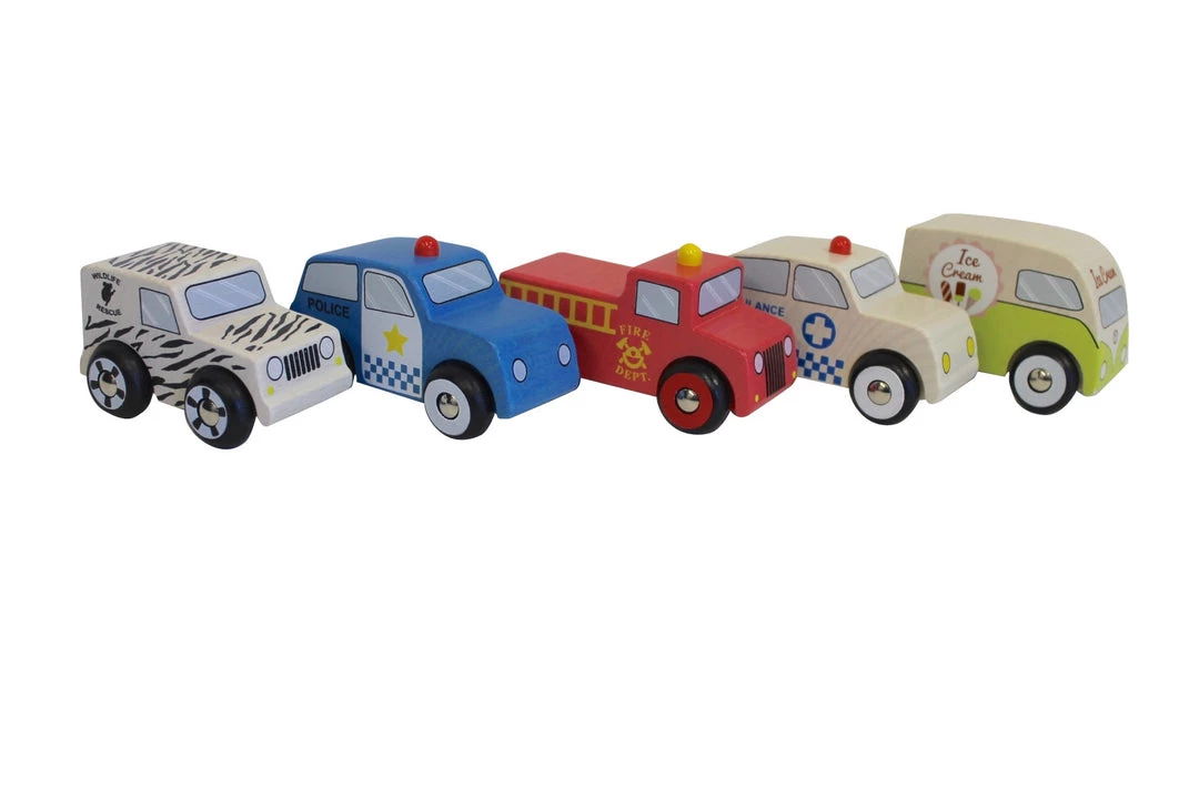 Discoveroo is a family owned business specialising in good quality wooden toys, games and educational products. The 5 different cars in this set include a police care, ambulance, fire vehicles, a wildlife rescue jeep and of course an ice cream truck! Small cars are 8x6x5cm and Large ones are 9.5x6x5cm. (18m+)