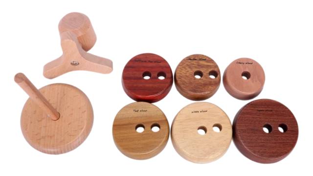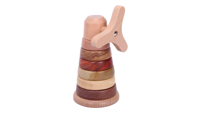 Made from 7 different exotic woods. Each ring is labeled with the type of wood.Â