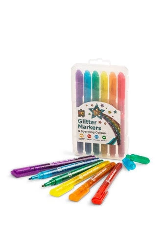 | Educational Colours Glitter Markers lay down bright and sparkling colours! Our washable markers are child safe with non-toxic, foodgrade, water-based ink and child safe ventilation caps. Vibrant colours give your creations a glittery shine! Age 3+ |