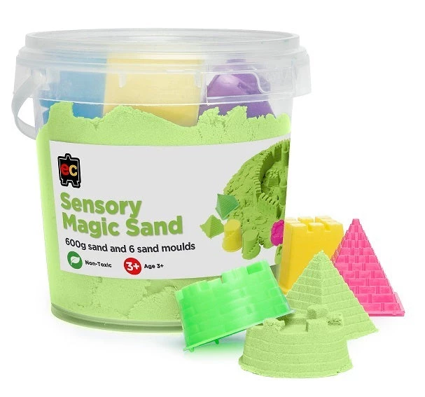 Educational Colours Sensory Magic Sand is perfect for creating crisp and precise designs and models! Children can use their imagination and play for hours using just their hands and/or sand tools. The Sensory Magic Sand can easily be moulded into castles, creations and models, then just as easily turned back into sand instantly allowing children to re-use it over and over again!