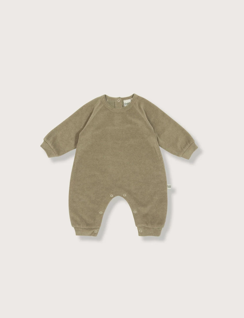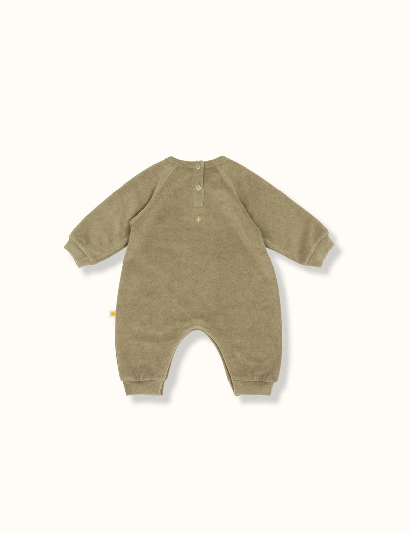 Our new slouch Long Sleeve/leg Romper is your baby’s new favourite. Made from our classic cotton terry, with a vintage-look. The baby onesie sports a snap button fastening at the nape and base to make changing a little easier.
