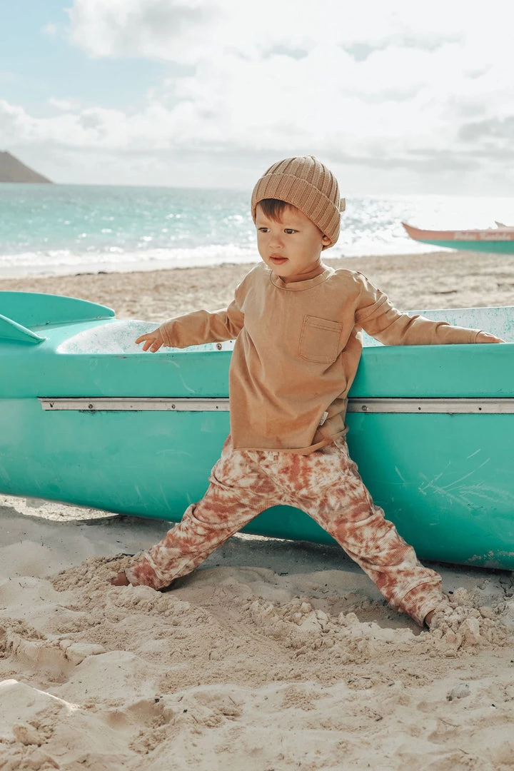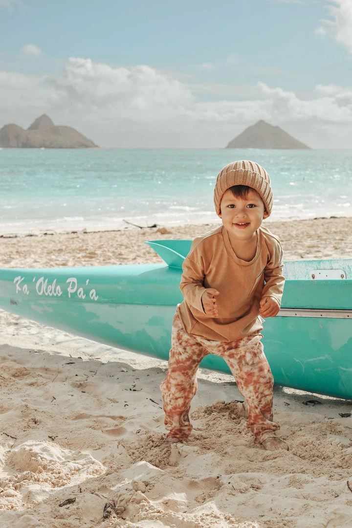 Exclusive Tie dye waffle stretchy cotton. New shape this season – drop crotch pants. Loose fitting leggings/pants wih adjustable elastic waist and pockets. So comfy.