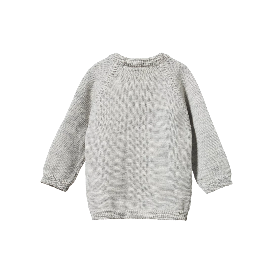 Your little one will be warm and snug in this special hierloom piece knitted from GOTS certified merino wool. Knitted in classic stocking stitch with rib binding around the neck, and a button down front closure to allow for easy dressing. Please take care of me – hand wash only.