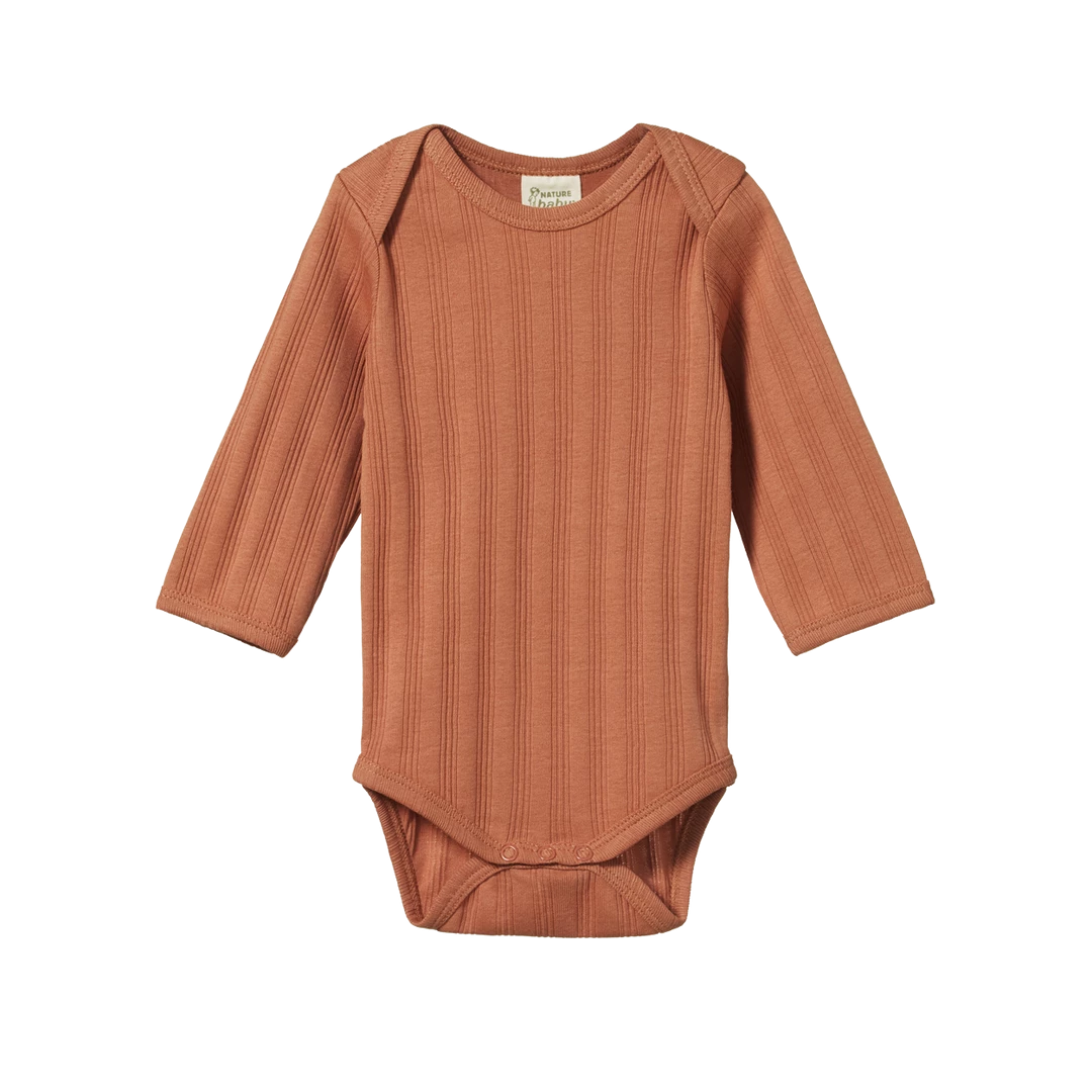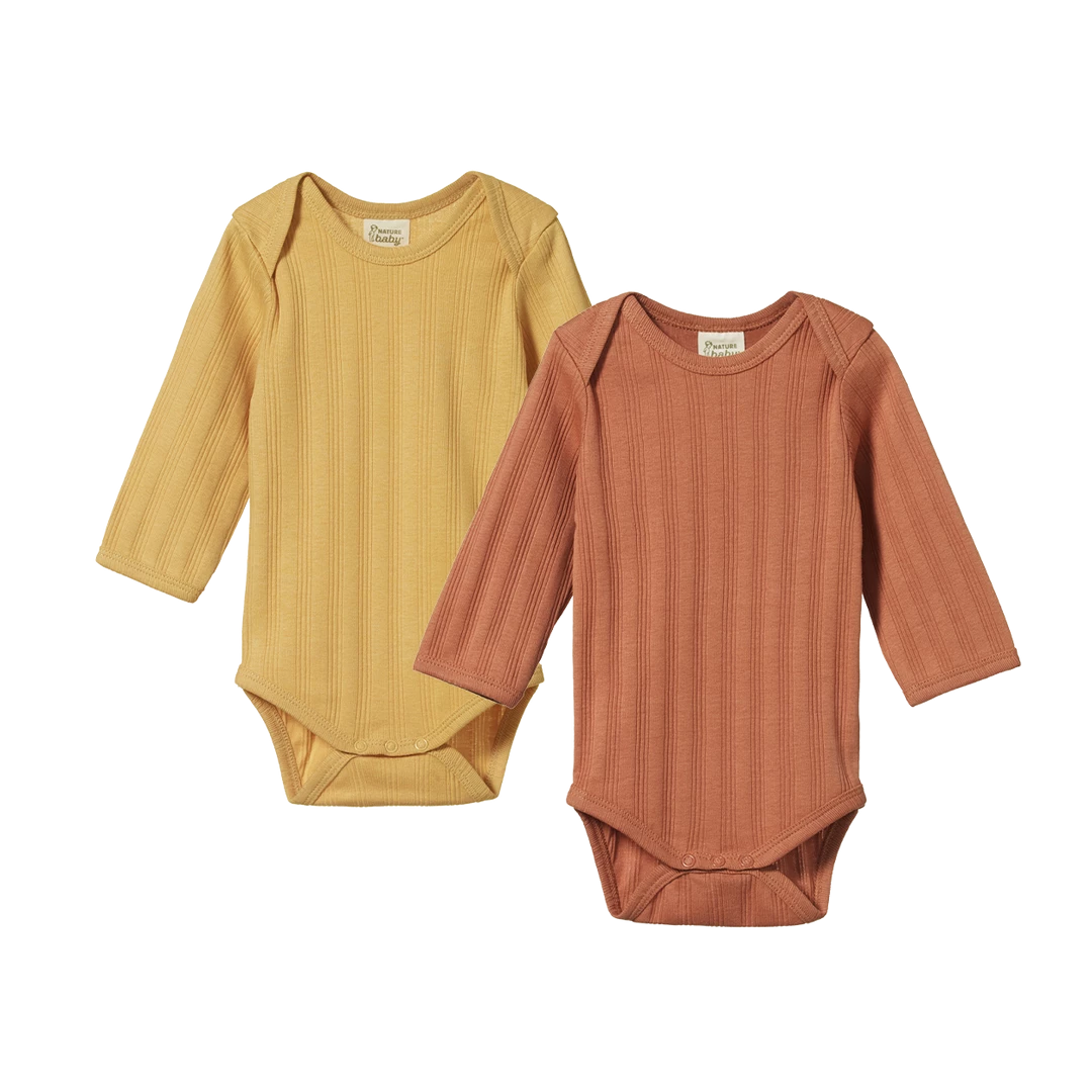 This much loved long sleeve bodysuit 2 pack is now in a beautiful new timeless fabric, organic cotton derby rib. This carefully knitted rib fabric, traditionally used in undergarments makes it a perfect everyday basic for Baby and their changing needs. Super soft and stretchy, while retaining its shape for wear again and again