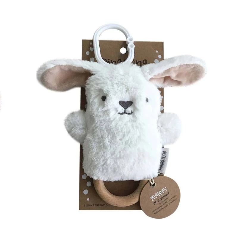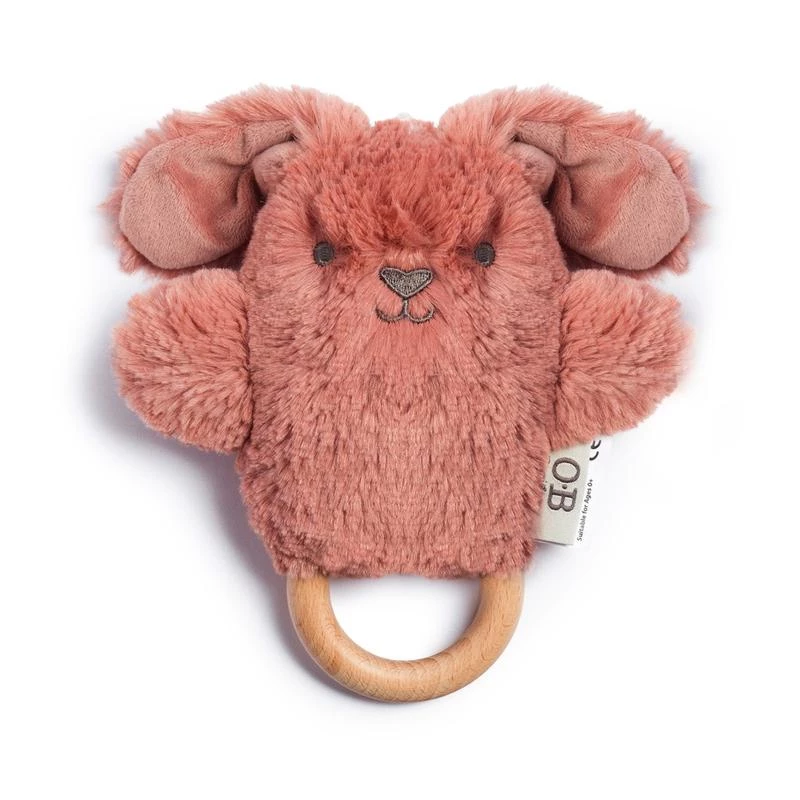Designed by O.B. Designs in Australia, these popular soft rattle toys are irresistibly cute and a great first toy. It helps develop motor skills and the wooden ring soothes teething pain. The soft colour palette is inspired by our home in Byron Bay and surrounds. We are passionate about design and use a combination of master craftsmen and high-quality materials to create our collection. Each toy comes with a sweet and fun bio. Perfect for gifting and a wonderful keepsake.