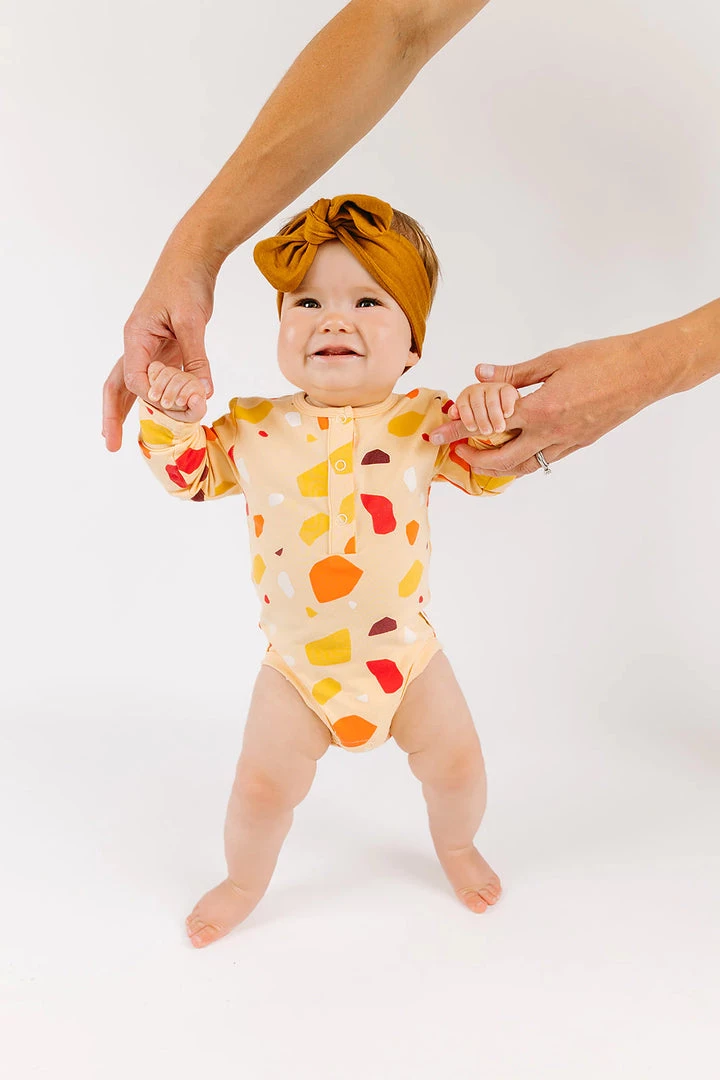 Homage to the terrazzo tile of yesteryear, this vibrant take on the trend will add a mid-century flair to your collection that promises to never go out of style! A colourful classic ready to be worn on its own or under pants for cooler days.