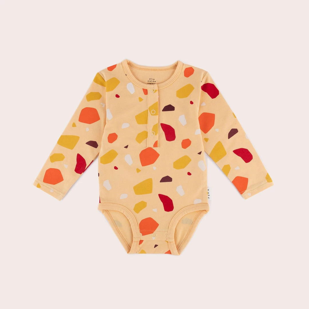 premium cotton + elastane blend / high quality fabric for durability and maximum comfort / snap buttons down the front and additional buttons around legs for easy dressing and changing / versatile style can be worn alone with legs out or layered under pants / Melbourne designed / ethically made in China / eco bags and packaging / all Olive and the Captain prints are designed in-house, making them truly one of a kind