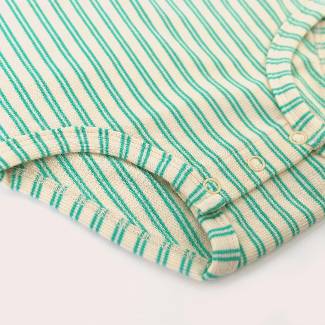 A classic turquoise stripe on a slightly textured (yet super soft!) cream base.