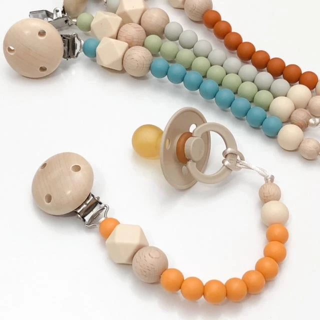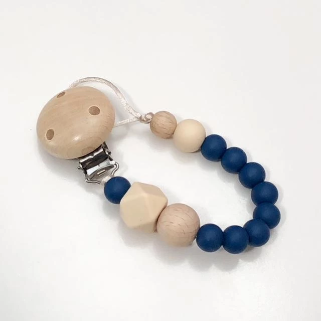 These Dummy Holders are made with non-toxic, food grade silicone and natural beech wood beads. The European clasp secures to clothing to keep dummy’s close at hand. Fully compliant and independently tested to EN12586:2007 to meet safety standards, they’re modern and practical for your babe.