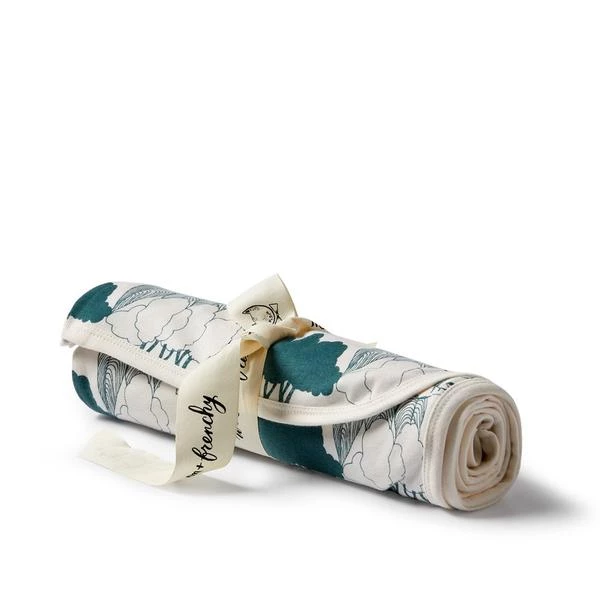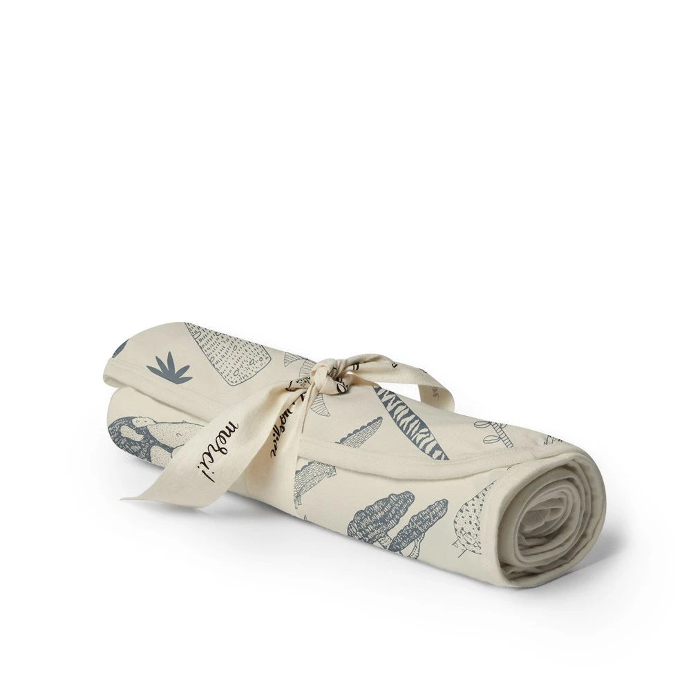 This printed bunny rug is perfect for swaddling. Made from a luxurious blend of GOTS certified organic cotton and elastane it is beautifully rolled and tied with a ribbon.