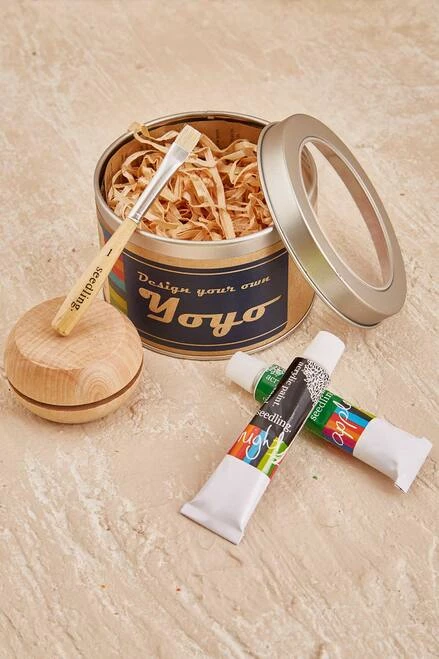 - Contains wooden yoyo, acrylic paints, paint brush, instructions