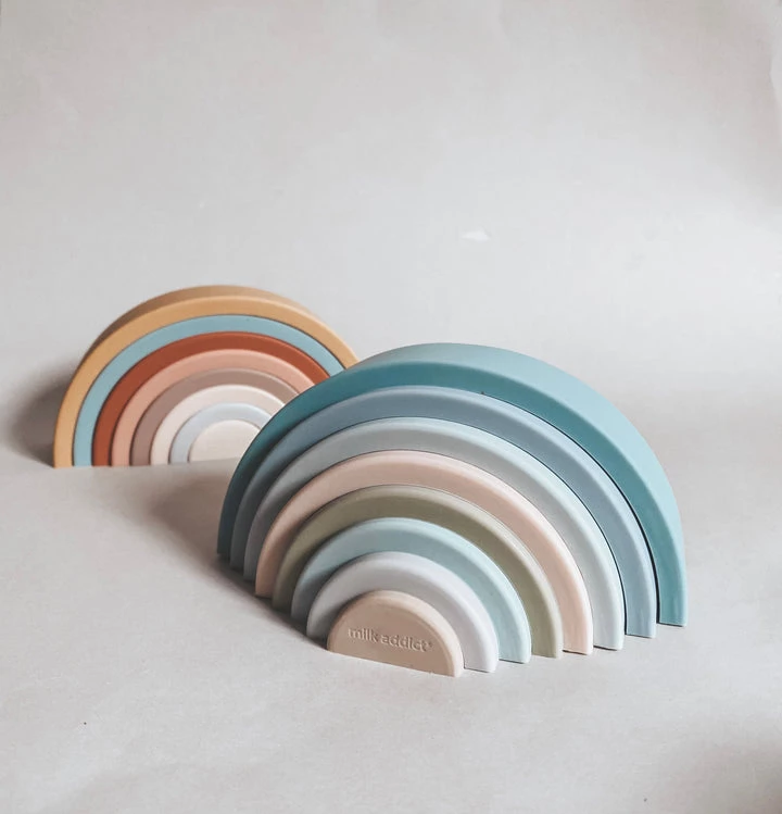 Eco-friendly toys never looked so good! The beautiful rainbow stacking toy in an awesome retro palette will provide hours of learning and play. Practical and eco-friendly as well as it is made from toxic-free food grade silicone, that is BPA free.