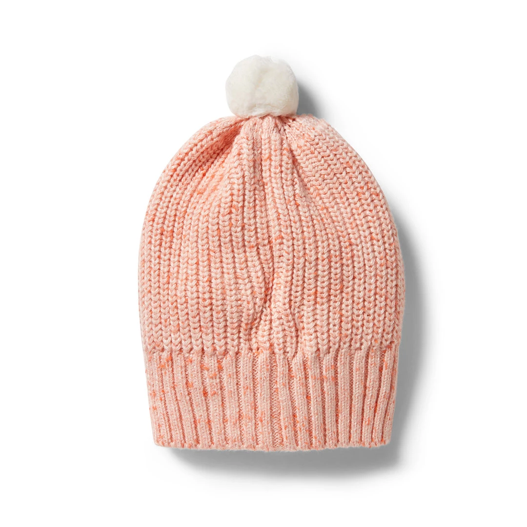 This warm and comfy cable knit bonnet is the perfect addition to your baby’s winter wardrobe. So easy to wear, features soft cables framing the face. Keep those little  warm and stylish this winter with Wilson and Frenchy. Fabric Composition: 50% cotton, 43% bamboo, 7% wool. Gentle machine wash. Made in China.