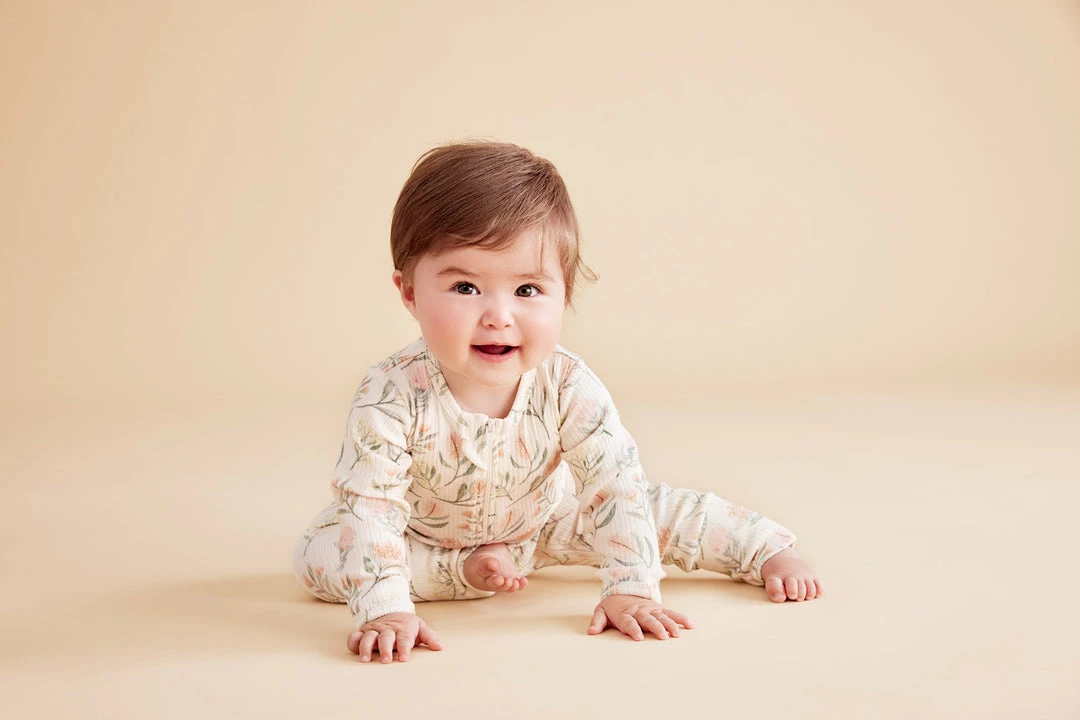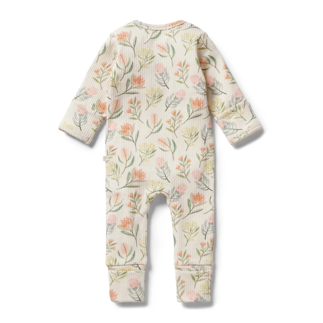 Wilson + Frenchy NEW Wilson & Frenchy – Organic Rib Zipsuit With Feet / Pretty Floral