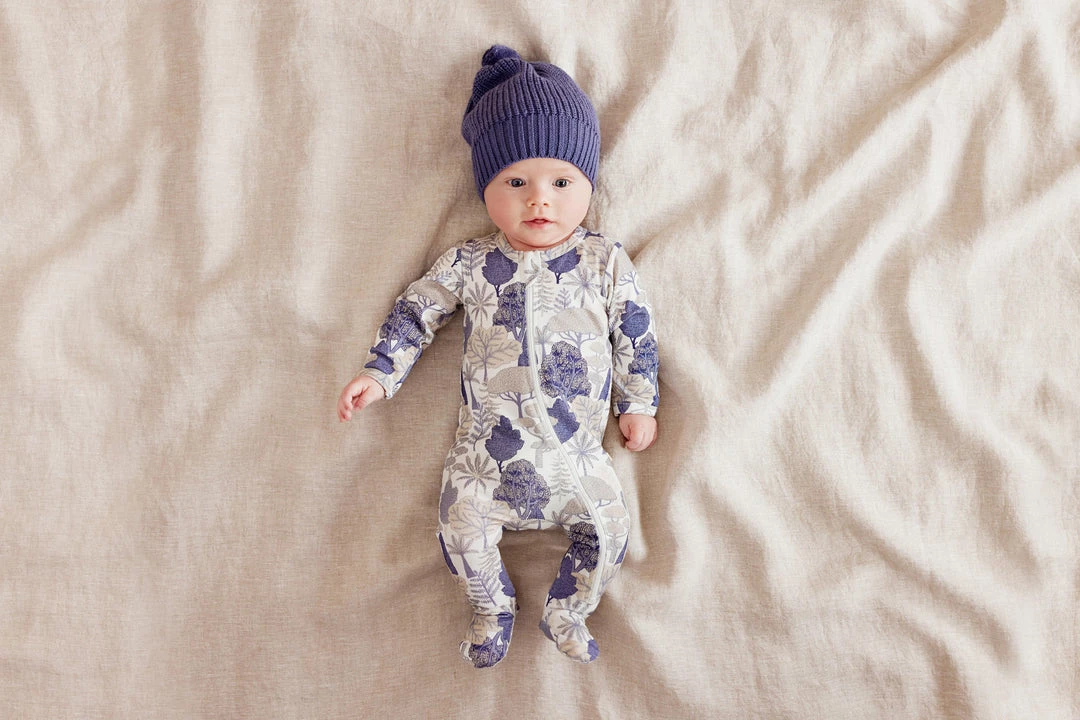 Wilson and Frenchy’s footed zipsuit is a newborn essential, designed using soft organic cotton with a one-way zip for quick and easy changes. The fold over cuff mittens on this petite to 000 size can be folded down to keep little hands warm, optional fold over feet allow for growth, and soft elastic to ensure a snug fit.. LOW FIRE DANGER. Complies to the AS,NZS 1249-2014 sleepwear standards. CAUTION – KEEP AWAY FROM HEAT AND FLAME. Fabric Composition: 95% organic cotton, 5% elastane. Gentle machine wash. GOTS certified. Made in India.